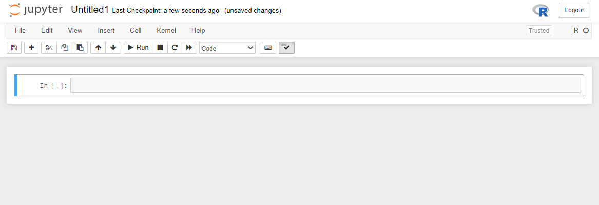 If you followed the steps in the previous section, you should now know how to launch a Jupyter notebook with the R language (Step 3 here). Launch a new notebook, and you should see the following open in your web browser: