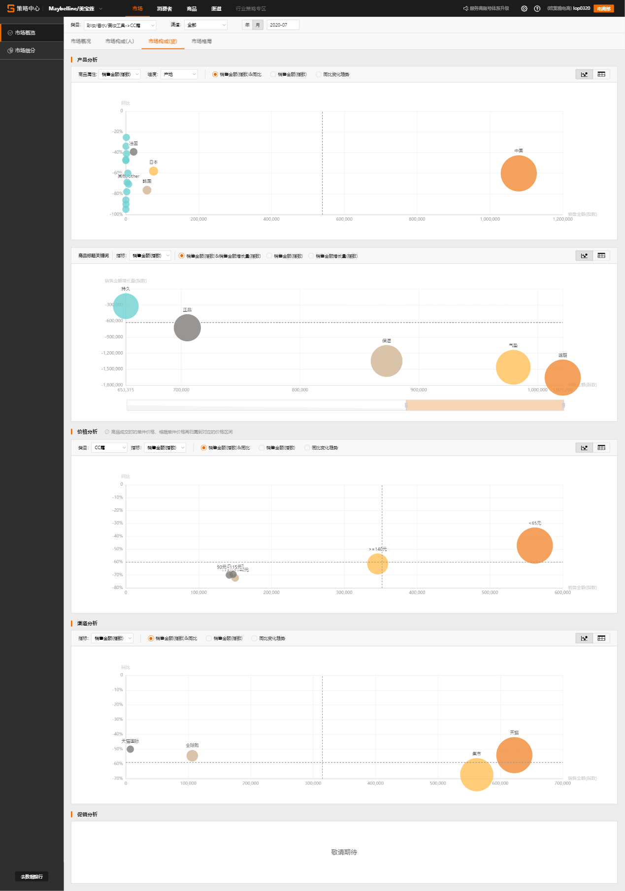 商品成交时的单件价格,根据单件价格再归属到对应的价格区间。如果有细分的三级类目,可选择三级类目查看价格分析。 指标:销售金额,销量,购买人数,搜索人数