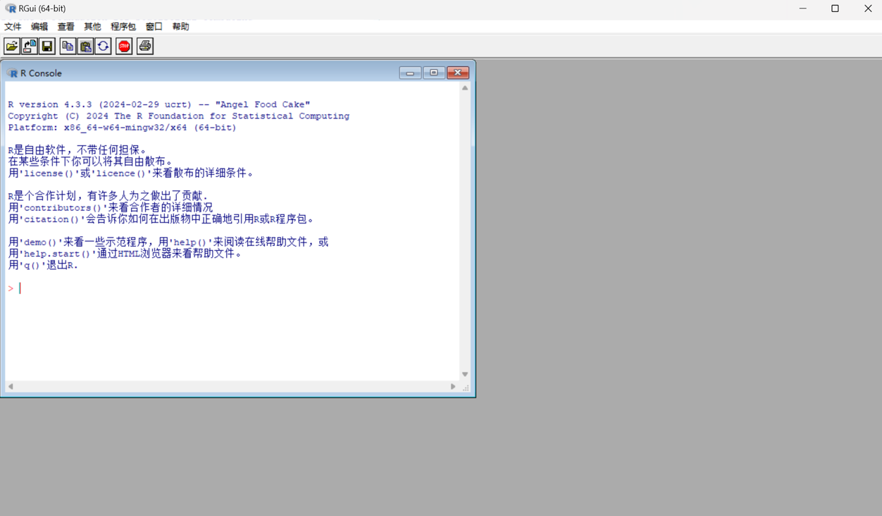 一般来说,现在大部分计算机都是64位比特的CPU,所以安装64位的R就足够了。安装时全部采用默认选择,安装完成后,你就可以看到下面这个界面。我的电脑上也没有安装R,所以我会直接给大家演示一遍R的安装过程。这是一个比较老的Windows机器,我习惯将其设置为英文界面,因为有时候如果设置为中文,可能会出现一些问题。现在,我将演示安装R的过程。首先,我会直接选择安装路径,确保路径中没有中文名称。然后,安装过程很快,完成后,我们会看到R的Logo,点击它就可以打开R的界面。