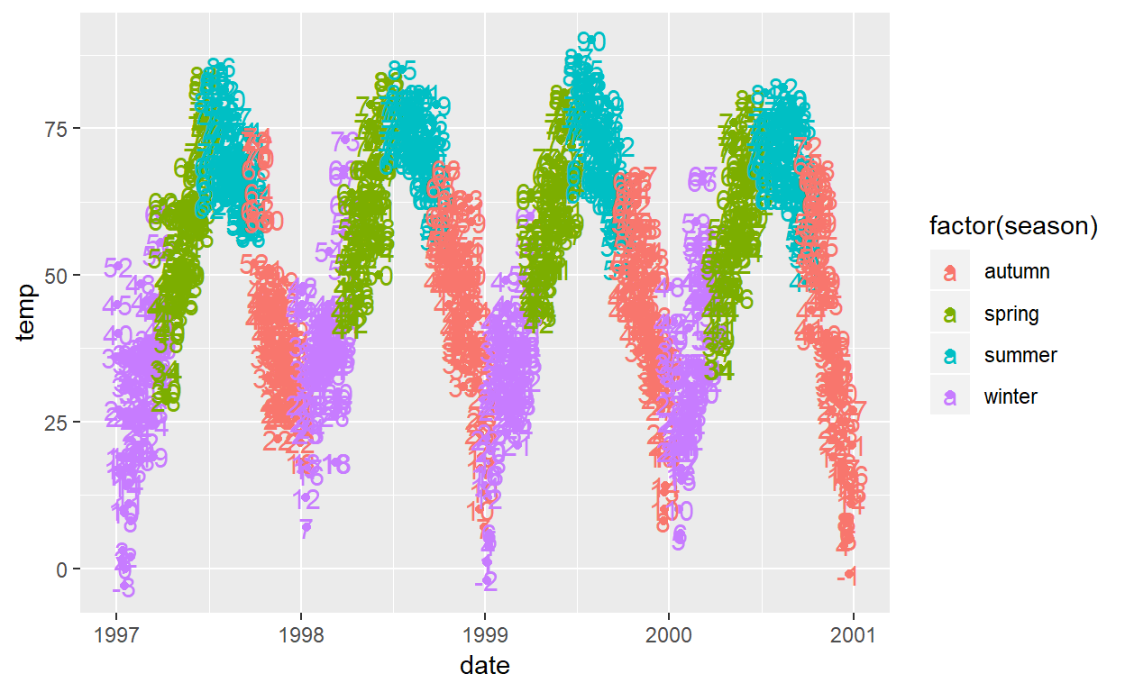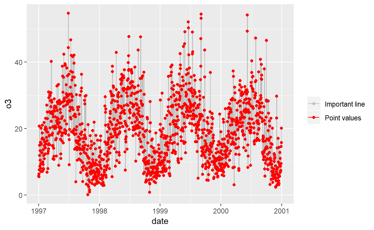 Er zijn nog meer aanpassingen van de legenda mogelijk via (guides(), override.aes)