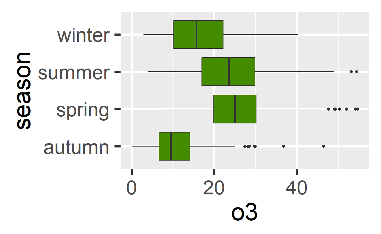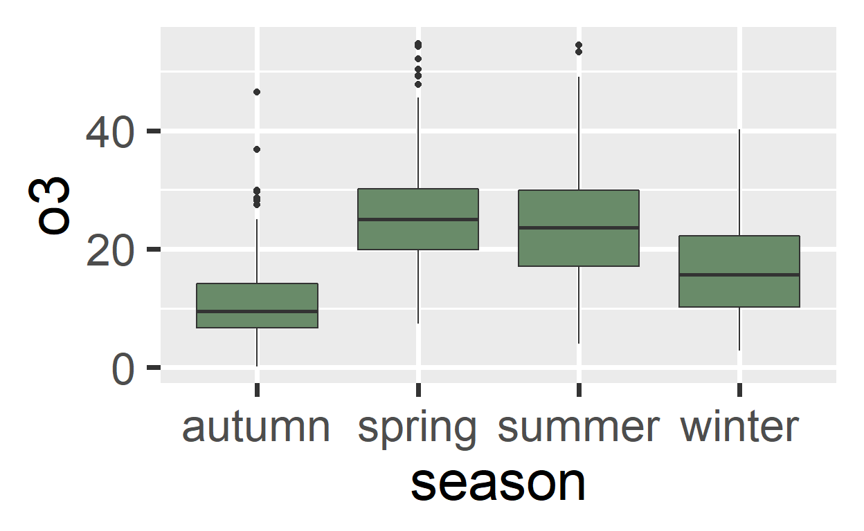 Alternatieven voor de box plot (geom_jitter() and geom_violin()) Box plots kunnen goed zijn, maar ook vervelen. Hier wat alternatieven, eerst - een box plot en dan de rest: