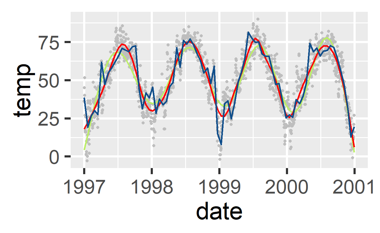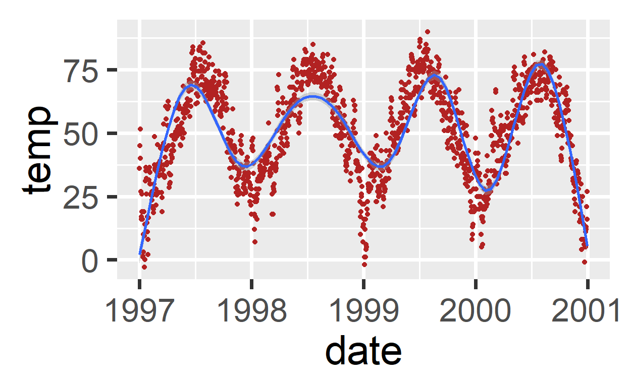 Hier de standaard (stat_smooth())