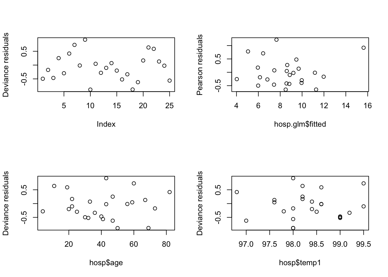 - Repeat the goodness-of-fit tests (using the deviance and Pearson statistic) in Section 4.3.3 for the models