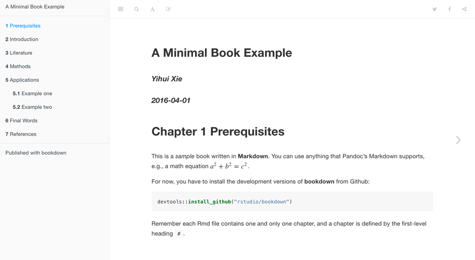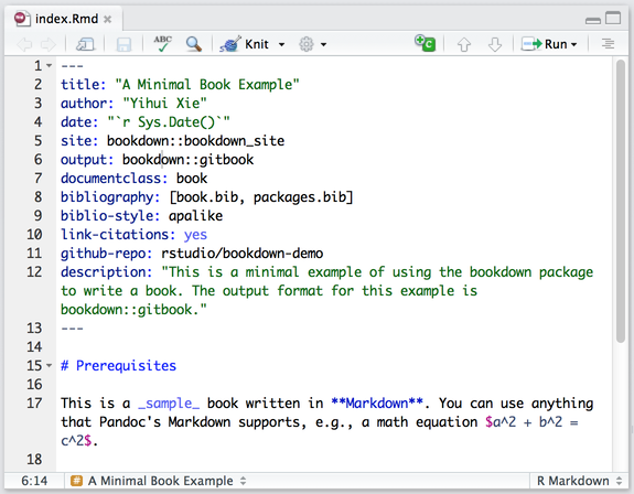 Open the demo book project within RStudio, open the index.Rmd file, and click the Knit button: