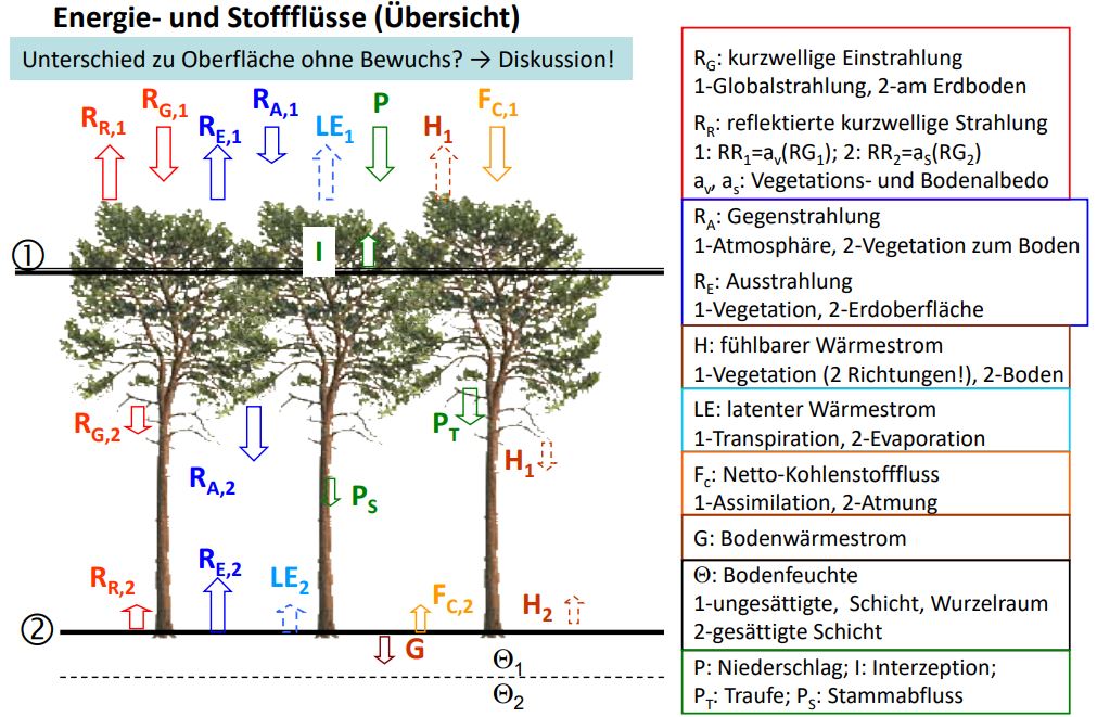 Pflanze ist eine Schnittstelle zwischen Boden und Atmospäre. Das Wachstum der Pflanze abhängigt von H2O-, CO2-, N- Flüssen.