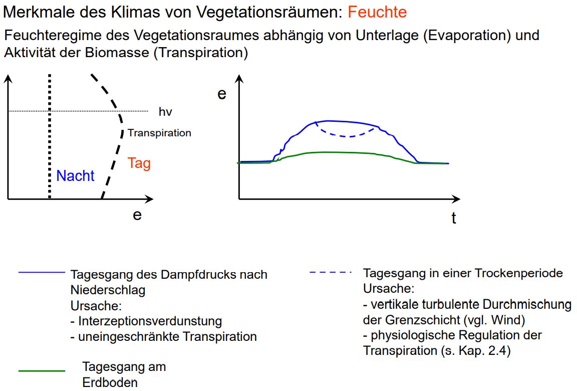 Feuchteregime des Vegetationsraumes abhängig von Unterlage (Evaporation) und Aktivität der Biomasse (Transpiration)
