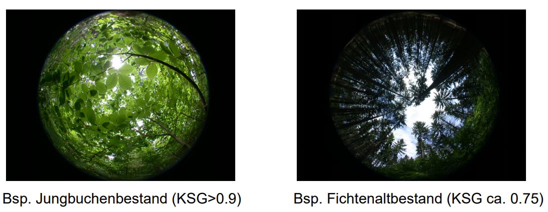 - Kronenschlussgrad: Anteil des durch Vegetation überdeckten Himmelsbereich