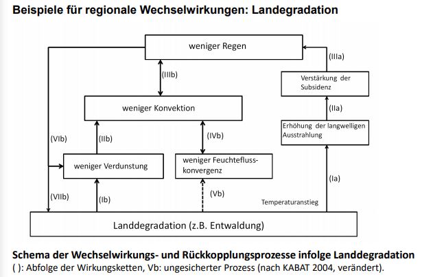 Schema der Wechselwirkungs- und Rückkopplungsprozesse infolge Landdegradation