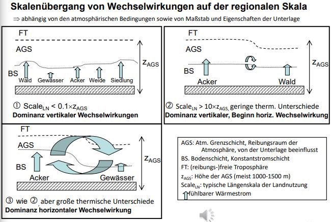 - Intensität und Wahrnehmbarkeit der Wechselwirkung wird bestimmt vom Grad der Kopplung LOF-Atmosphäre, die von der Komplexität der LOF abhängt (z.B. Wald-starke Wechselwirkung, Kurzgras-schwache Wechselwirkung)