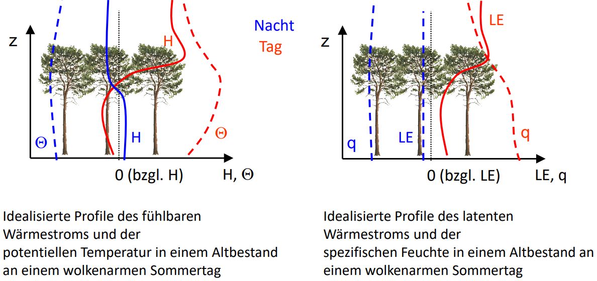 Absorption am Tage \(\rightarrow\) Temperaturmaximum im Kronenraum