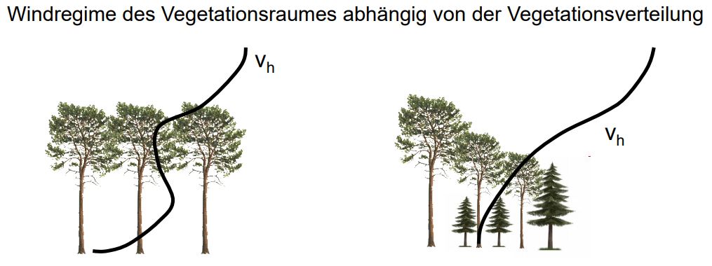 Windregime des Vegetationsraumes abhängig von der Vegetationsverteilung