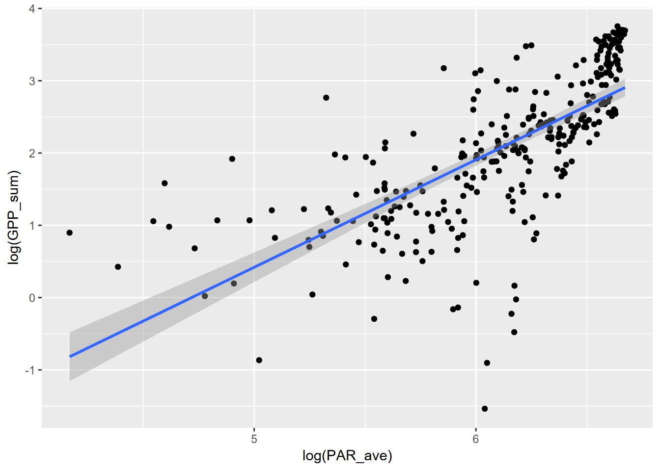 ## lm(formula = log(GPP_sum) ~ log(PAR_ave), data = Carbon_Flux)