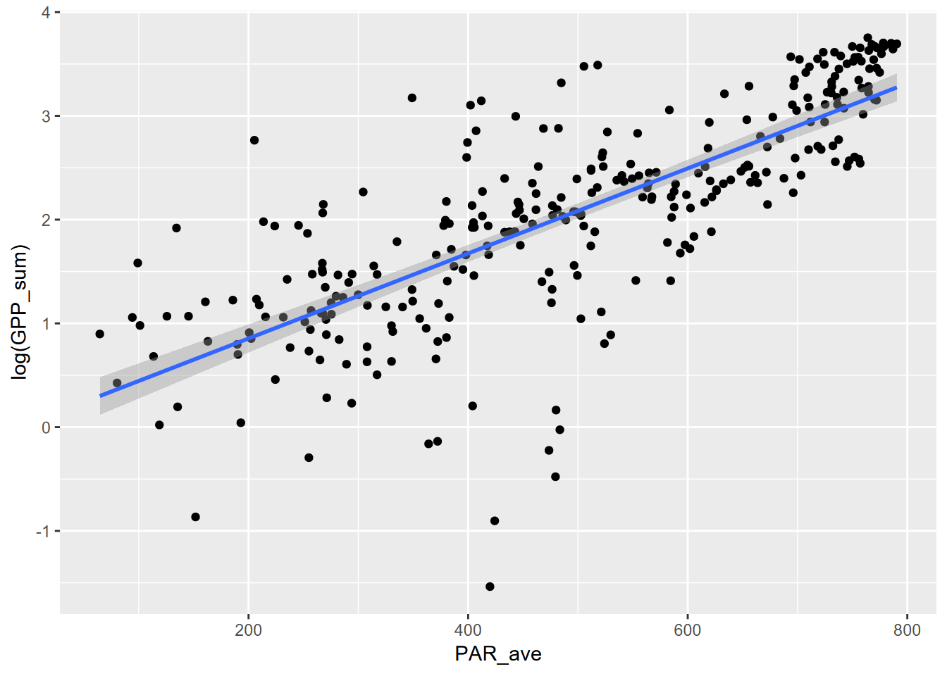 So what can we do with this? In this case, we don’t take the \(log(PAR)\) but just use PAR (in our case PAR_ave).