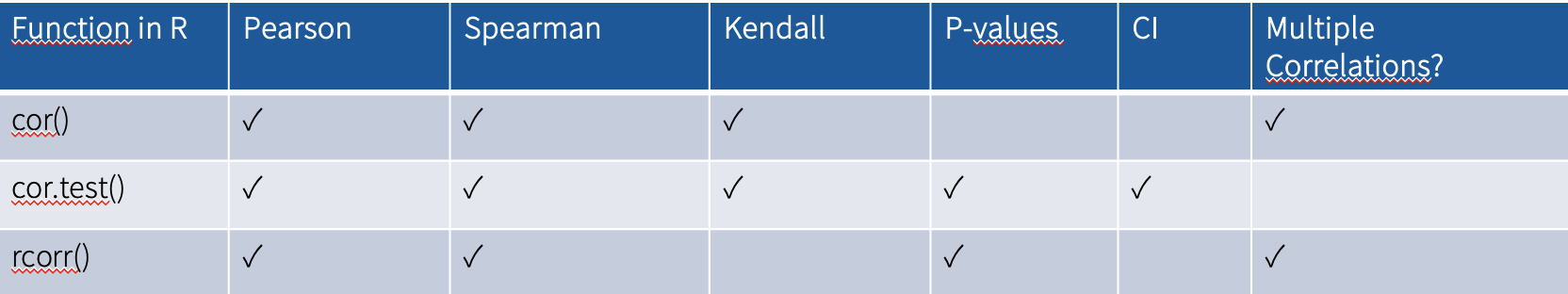 → in this course we will use Pearson’s R