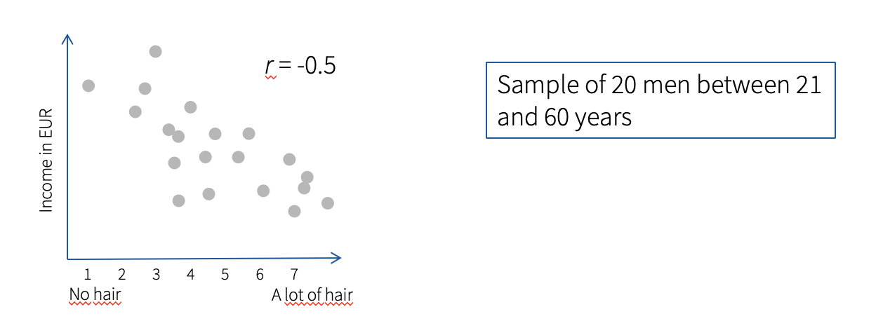 Hypothesis: Men with bald heads are richer than men with hair. In this case, age is a possible influencing variable, without controlling for age, a false correlation can occur.