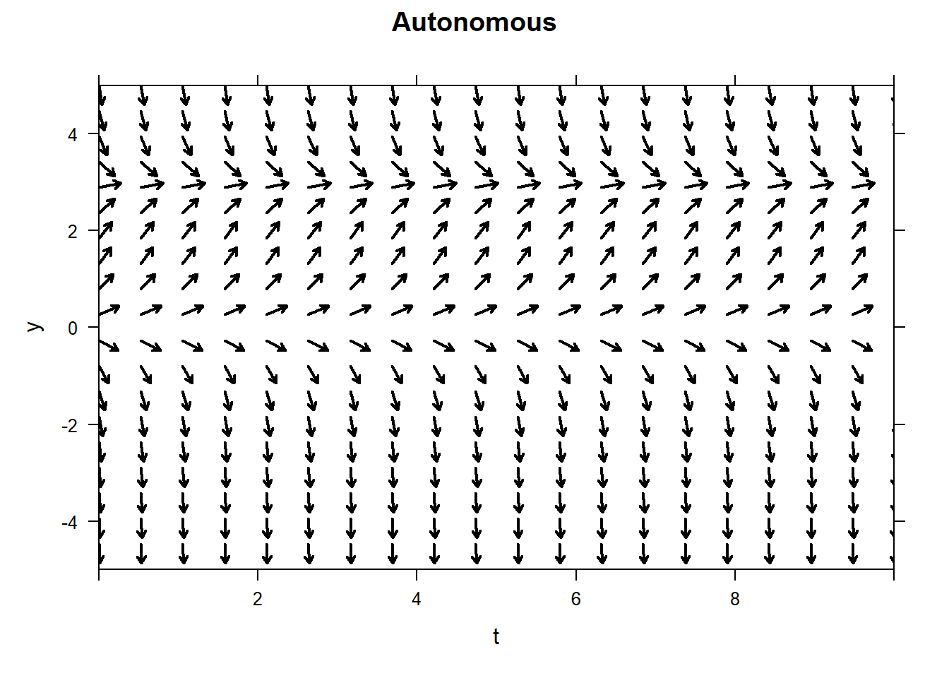 plotODEDirectionField(y*(3-y)~t&y,main="Autonomous")