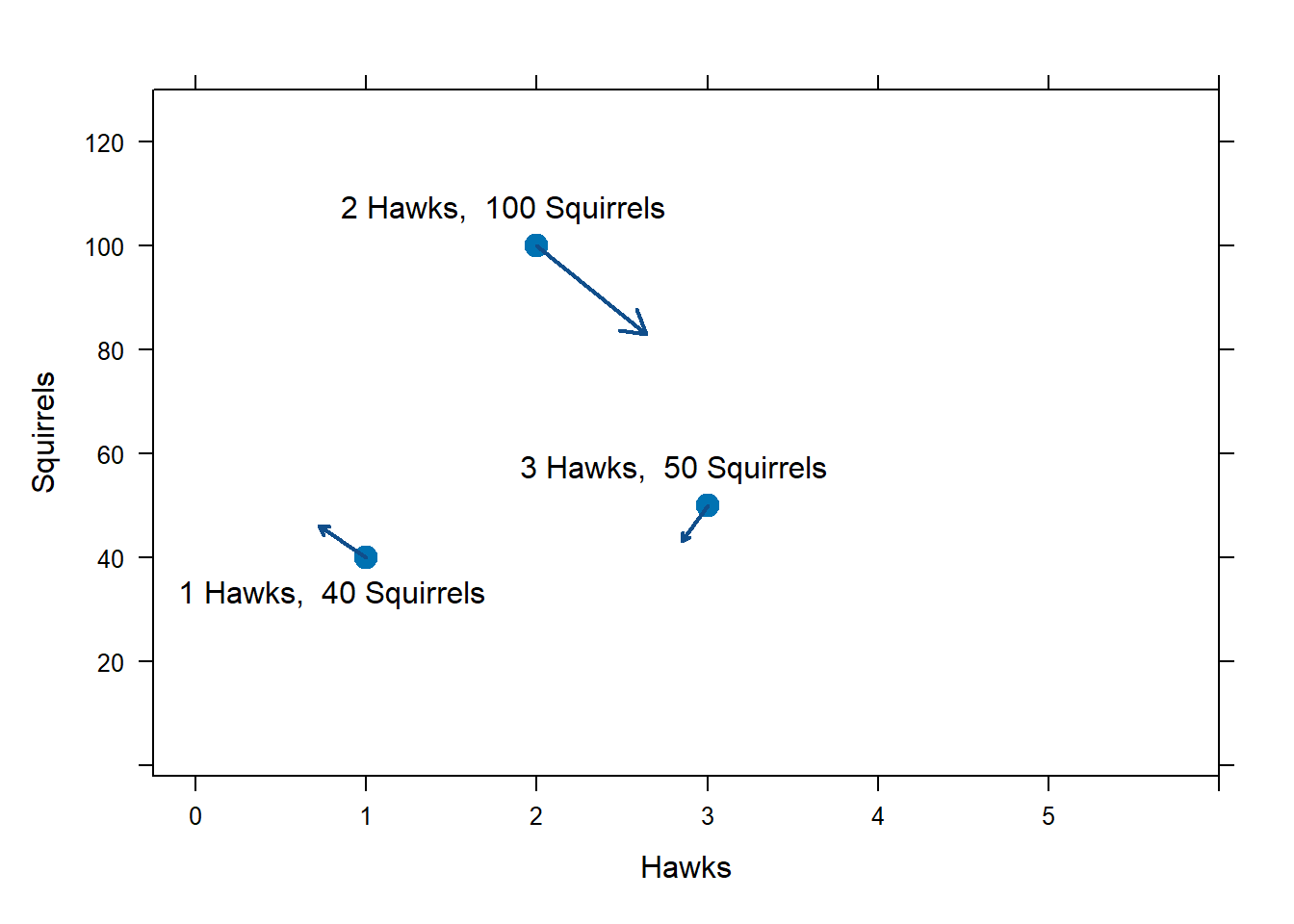 We represent this by drawing a vector with slope 0.84 emanating from the point \((t=1,y=1)\).