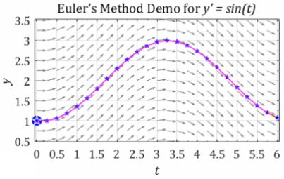 \[y(t_{n+1})=y(t_n)+\Delta t \sin(t_n).\]