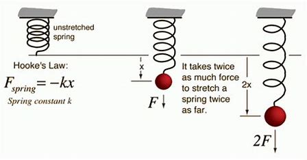 For a spring we have Hooke’s Law which says that if we extend a spring by an amount \(x\) from its natural resting position, then the force of resistance to extension of the spring is \(-kx\), where \(k\) is a constant called the stiffness of the spring.
