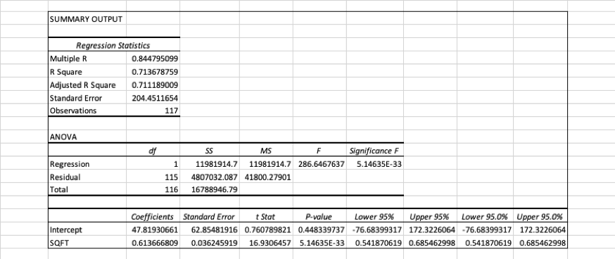 PRICE = 47.819 + 0.614xSQFT