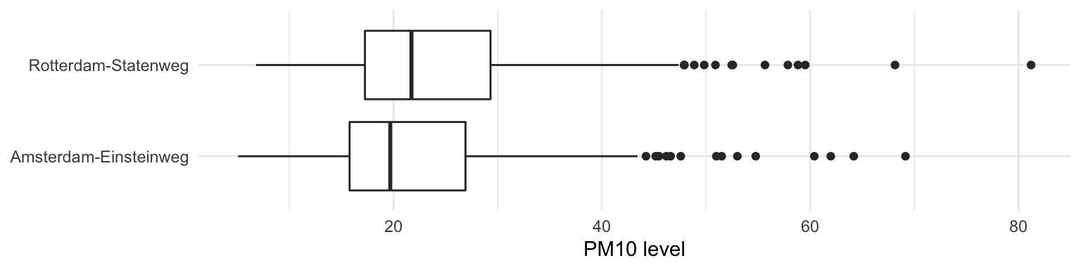 Example: comparison airpollution between Amsterdam and Rotterdam