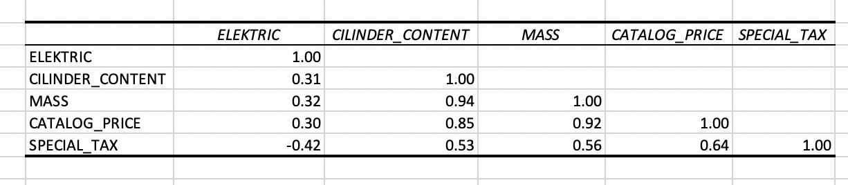 Note. MS Excel output linear regression model with SPECIAL_TAX as response variable and CATALOG_PRICE and ELECTRIC as explanatory variables. ELECTRIC is a dummy variable which takes on value 1 if the car is an electric car and 0 otherwise.