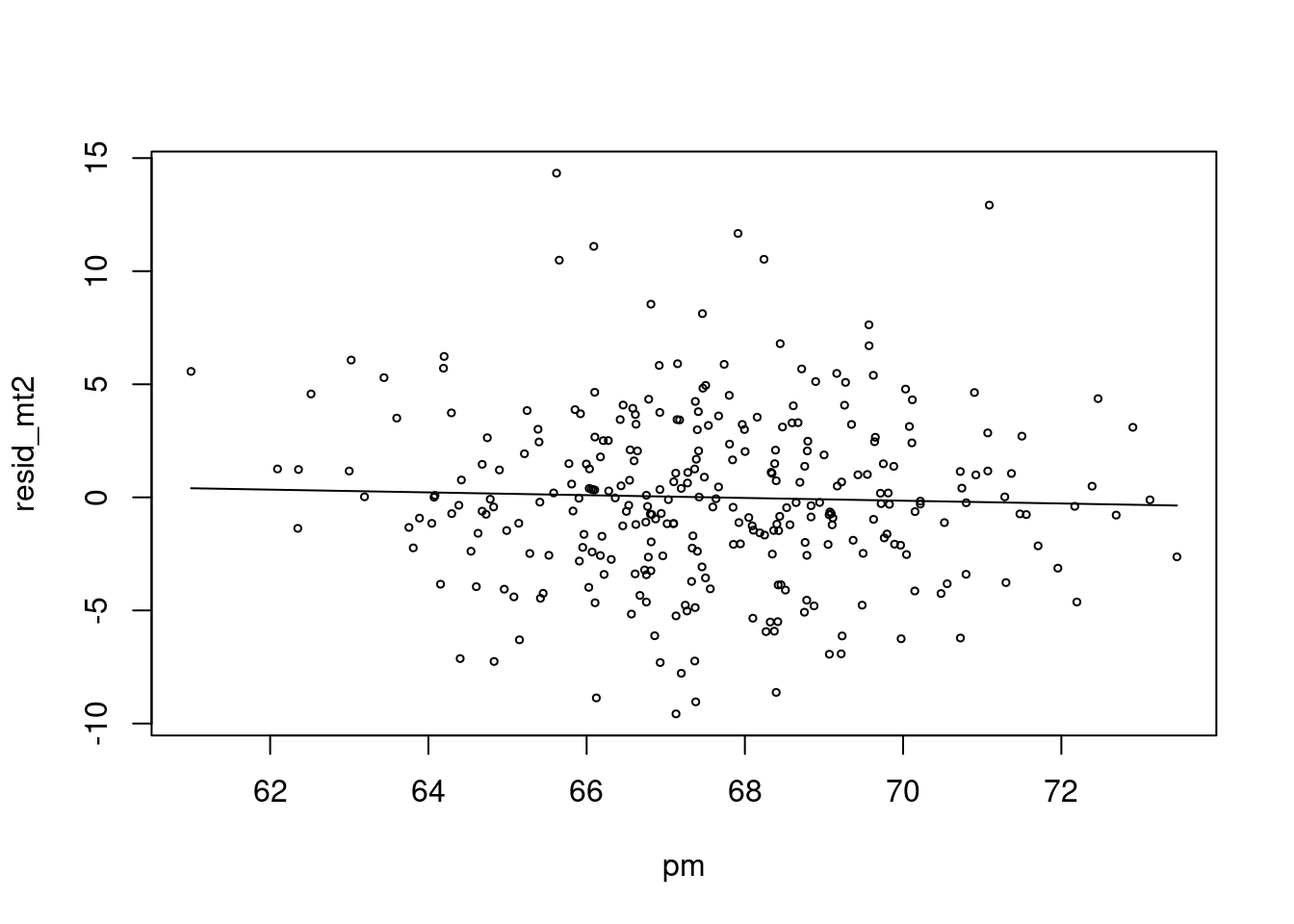 plot(pm, resid_mt2, type='p', cex=0.5)