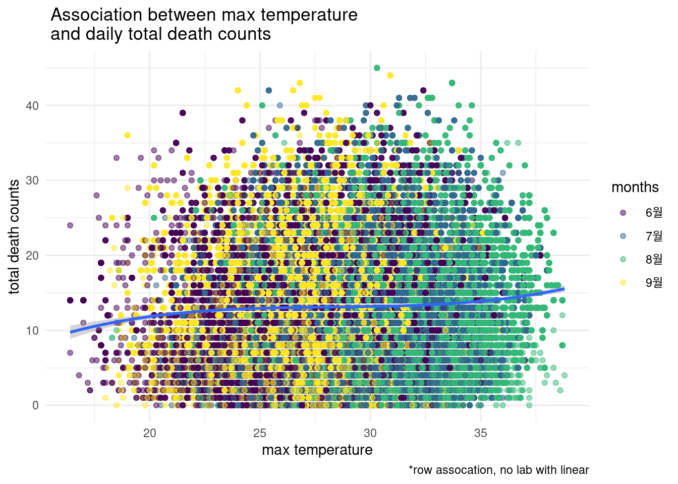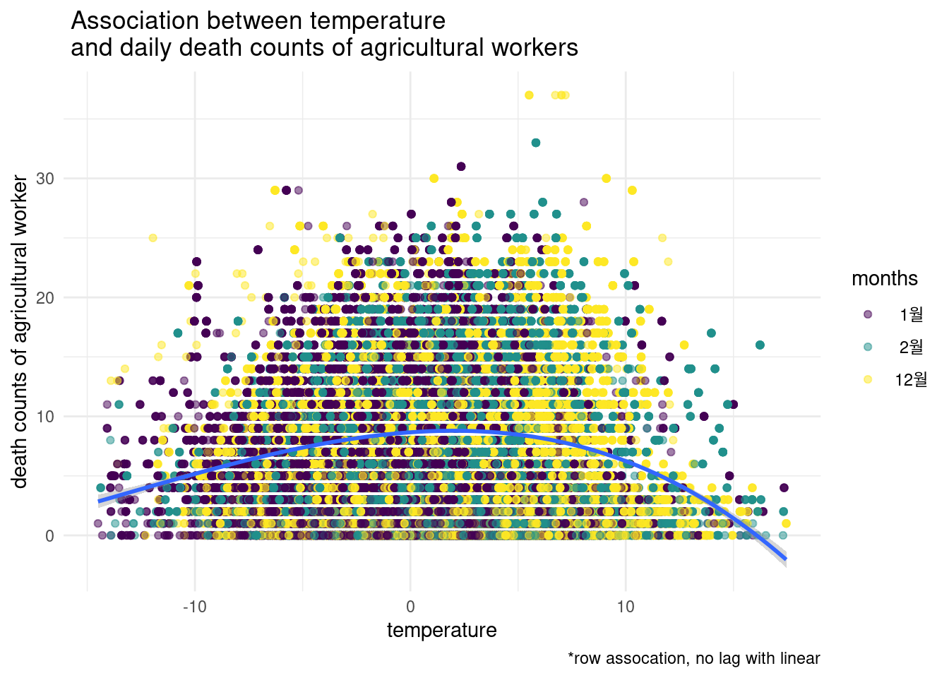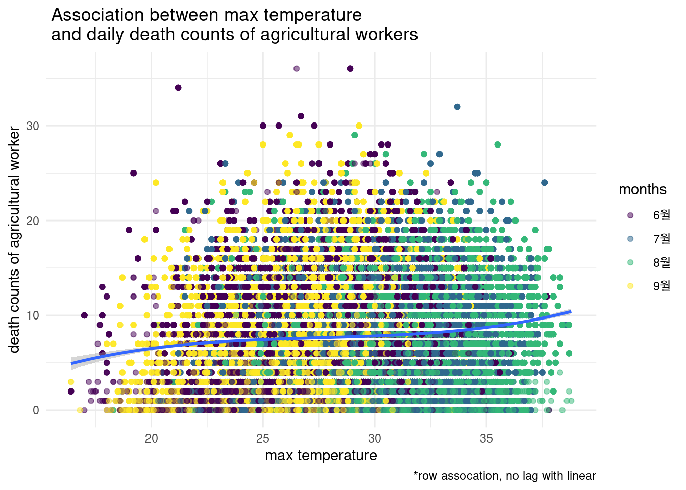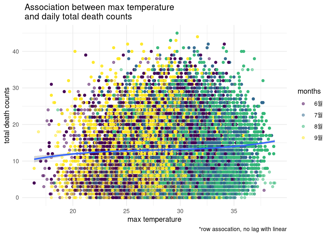 > 그림으로 관찰해 보면 빨간색이 lag time을 준것입니다. 누가 더 사망과 관련이 있어 보이나요?