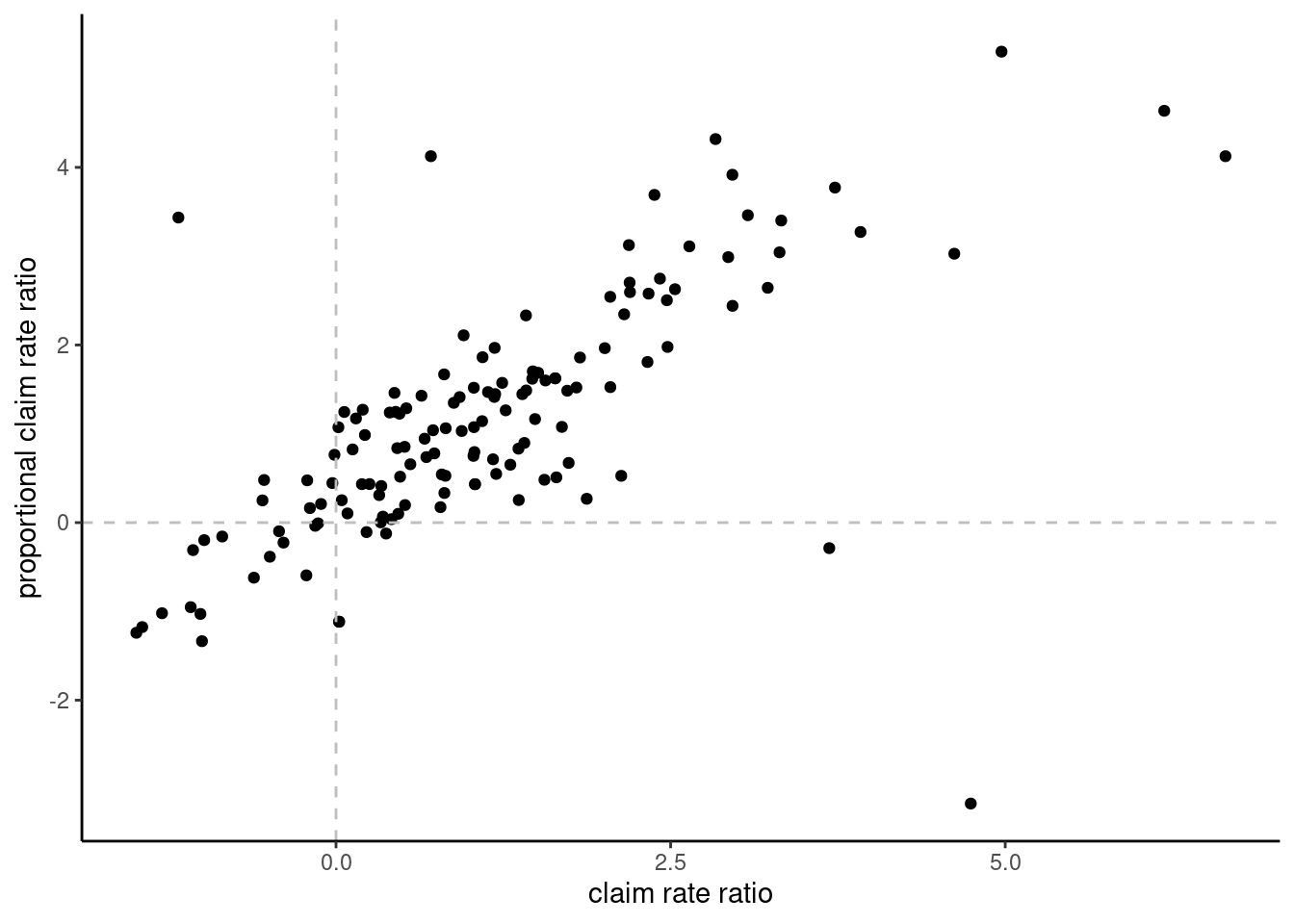 ylab("proportional claim rate ratio") + #+ ylim(c(-0.5, 6))
