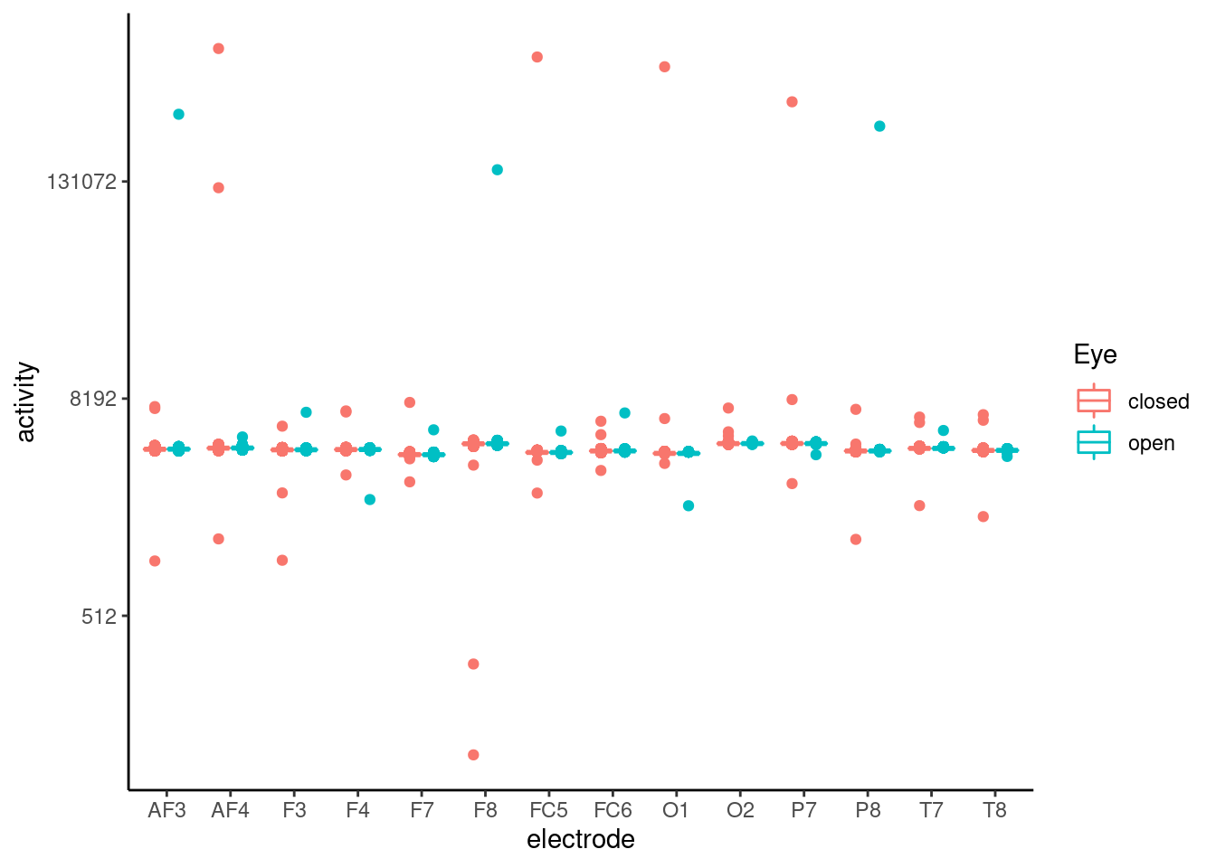 ggplot(aes(x = electrode, y = activity, color = Eye)) +