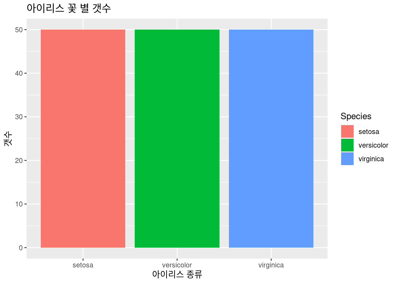 아이리스 꽃 별 갯수를 그려보겠습니다. 50개씩 있네요.