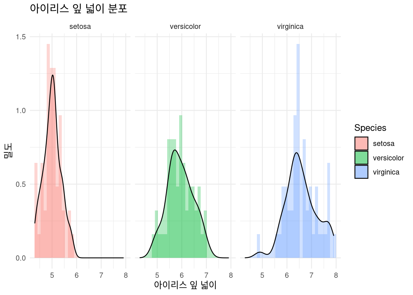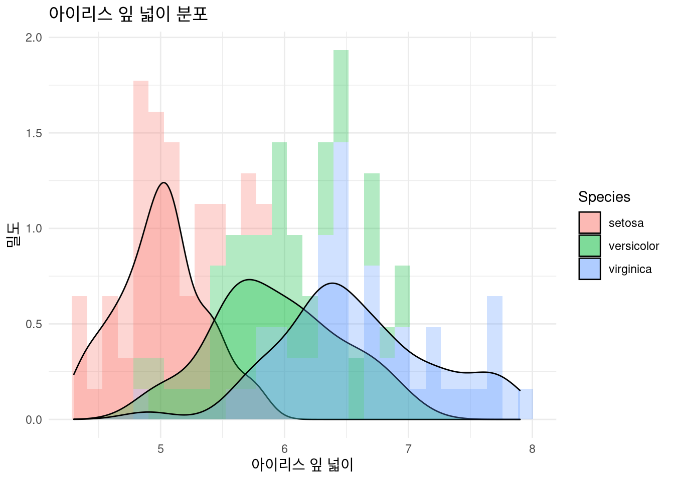 ggplot(aes(x = Sepal.Length, fill = Species)) + # 색 구별 추가!