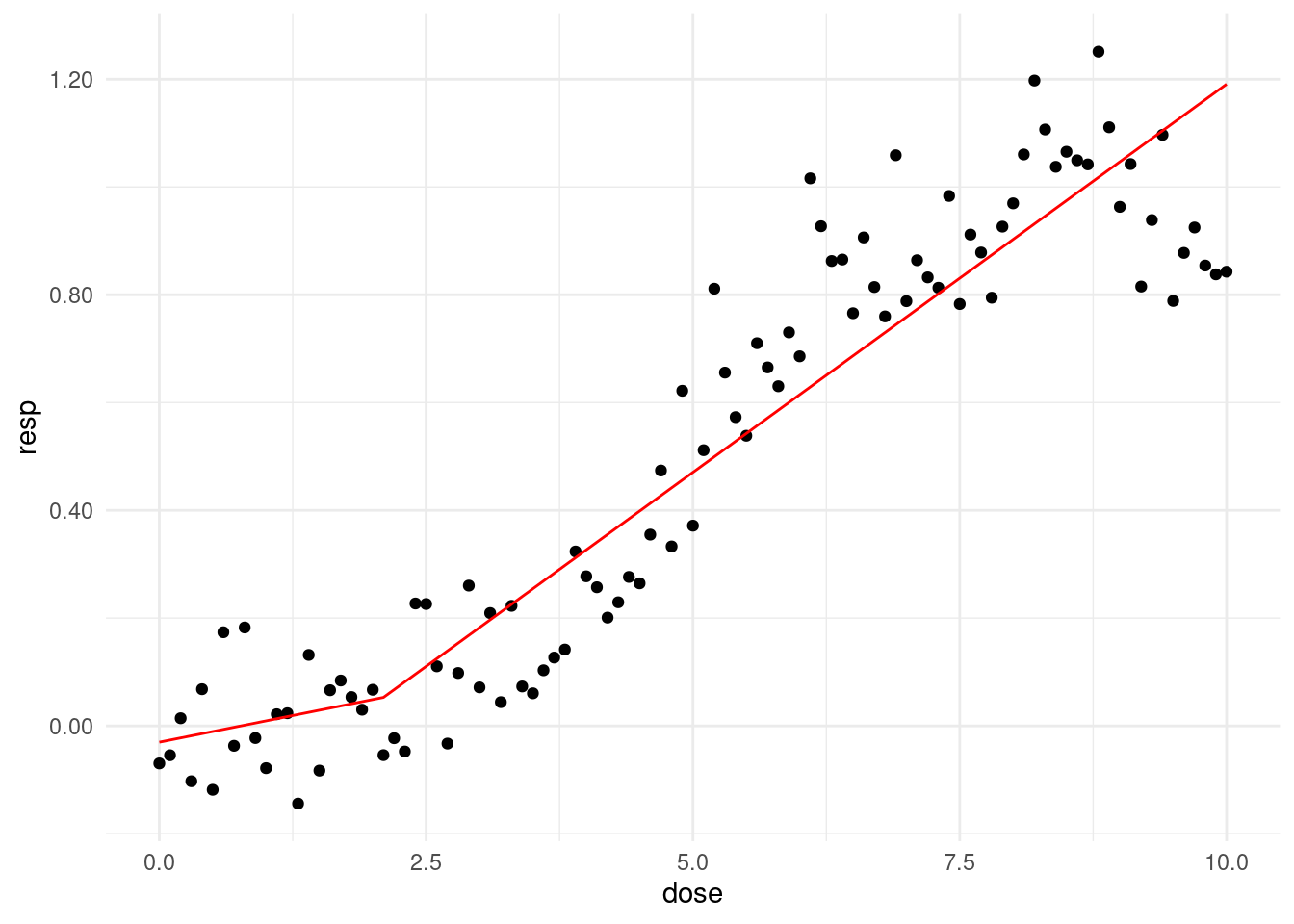 | If Dose < Ɵ | Resp= α + β1 · Dose + Ɛ0 |