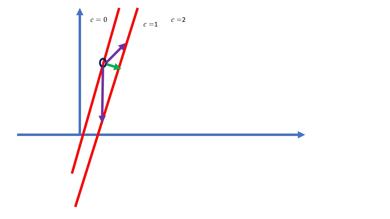 you will agree with me that the best candidate is the green one. That is the fastest way we find to advance to the next point of the function. Well, look, that vector is proportional to another that we have already drawn before: