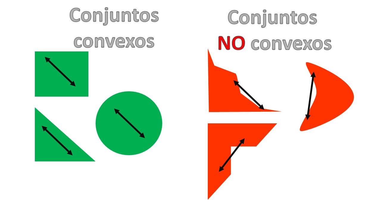 In fact, to identify whether or not a set is convex you must outline it and then see if it meets the definition we have underlining. In the following FIG 4, we can see the idea: in the sets convex, you choose any two points of the set, you trace a segment imaginary and this segment “does not come out” of the whole. That doesn’t happen with nonconvex sets.