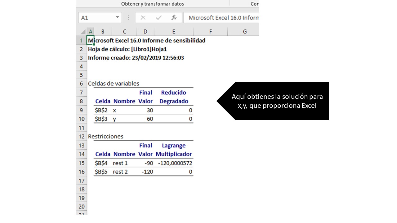 Once you request that report, you can analyze which is the optimal (global) that finds Excel and the multiplier. Of course, Excel does not analyze by whether or not the optimum is global. He gives you the best solution. From you it depends on whether we are in the global case analyzing the theorems of sufficient conditions that we have told you!