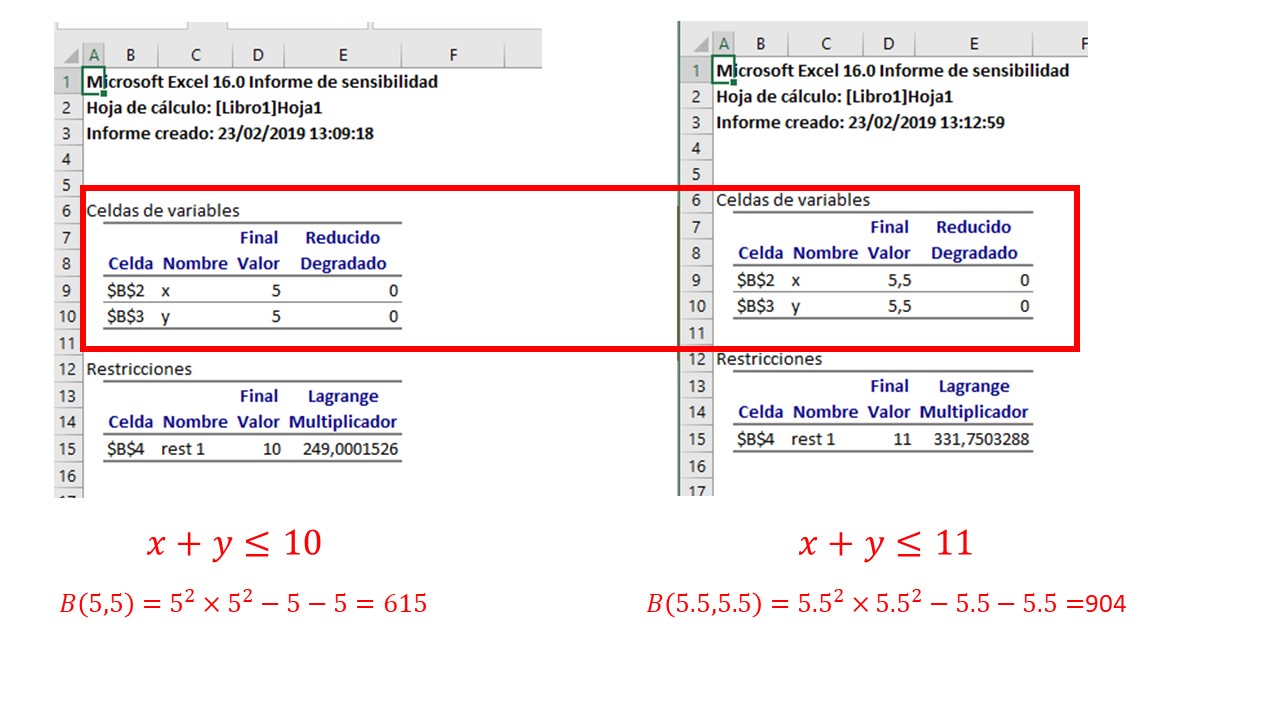 In class the optimization problem will be solved with equality restrictions of the Mathematics I exam.