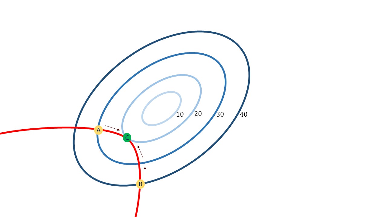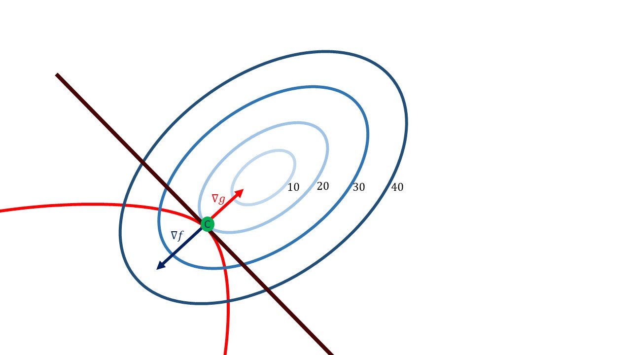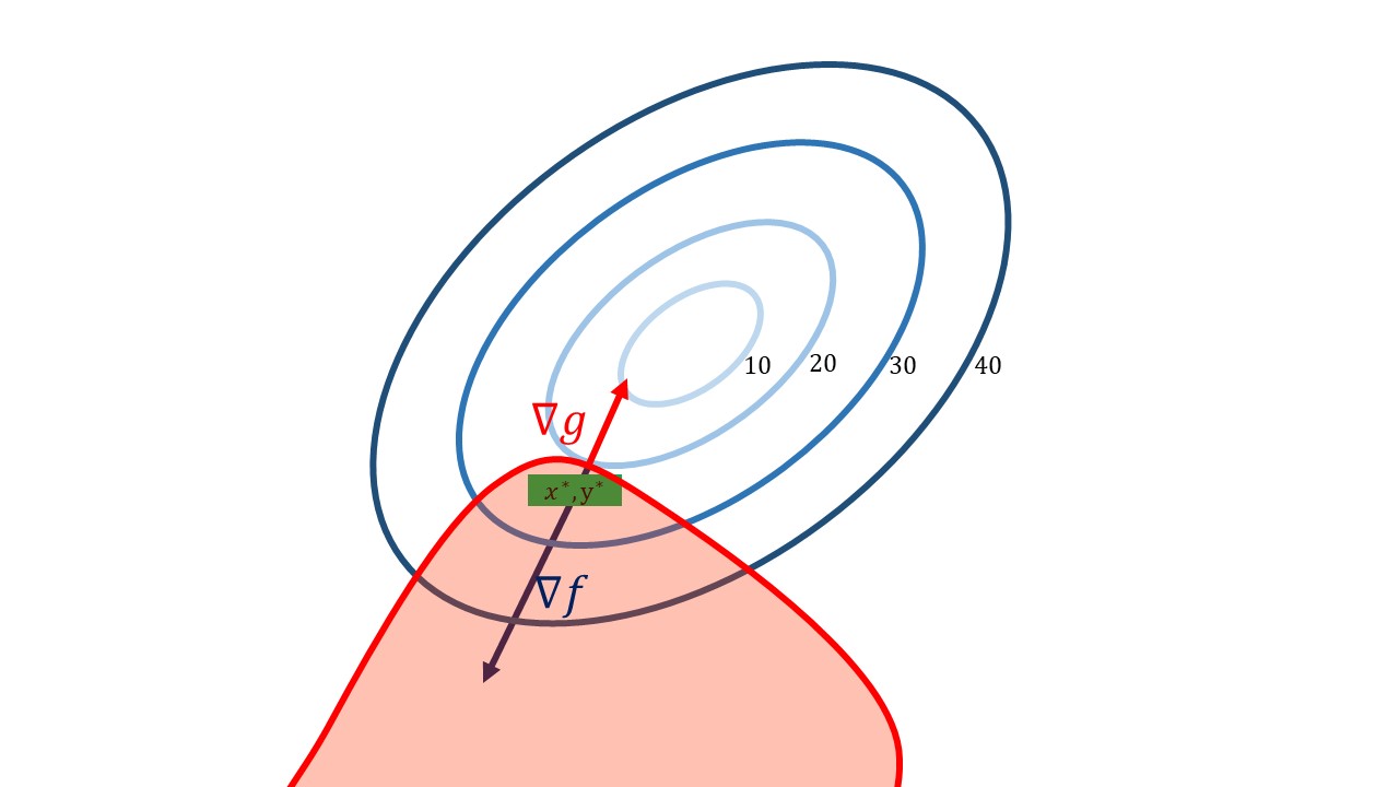 | partial derivatives | \[ \; \; \; \; \; \; \; \; \; \; \; \; \; \; \; \; \; \; \; \; \; \; \; \; \frac{\partial\mathcal{L}}{\partial x}=0, \frac{\partial\mathcal{L}}{\partial y}=0 \] | |