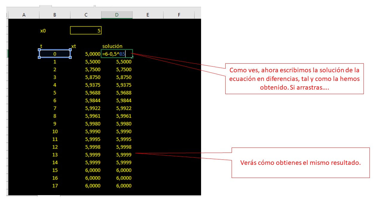 Models of difference equations can be solved in Excel in a very simple way. This can help you check if you have resolved well. Let’s look at an example: