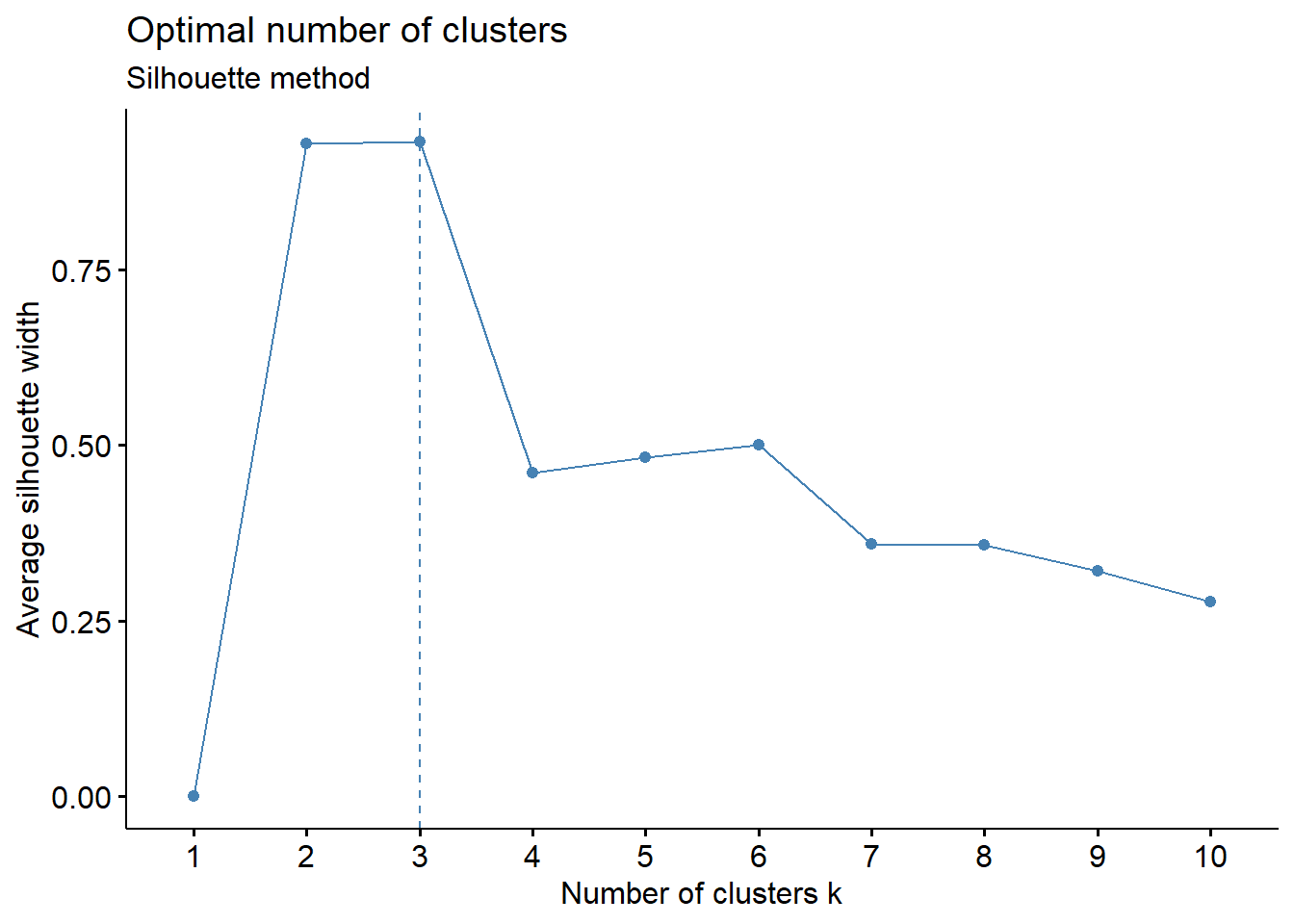 Silhouette determines the quality of the cluster. If an observation fits well in a cluster, it will have a high average. Therefore, the higher the number, the better the clustering k.