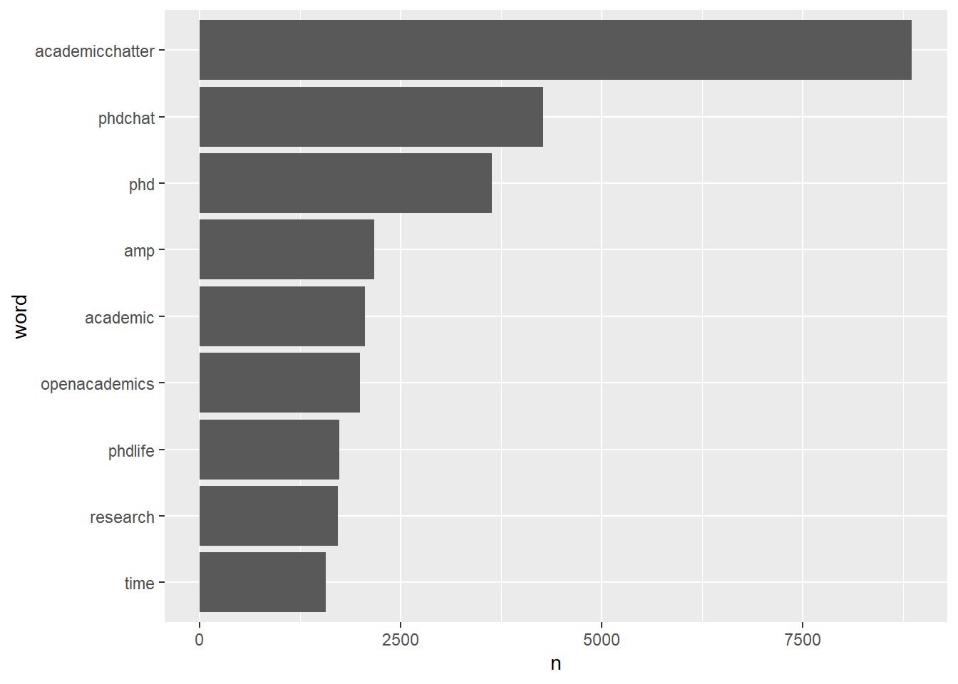 ## 1 academictwitter academicchatter 3379