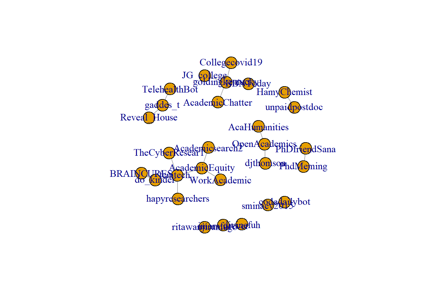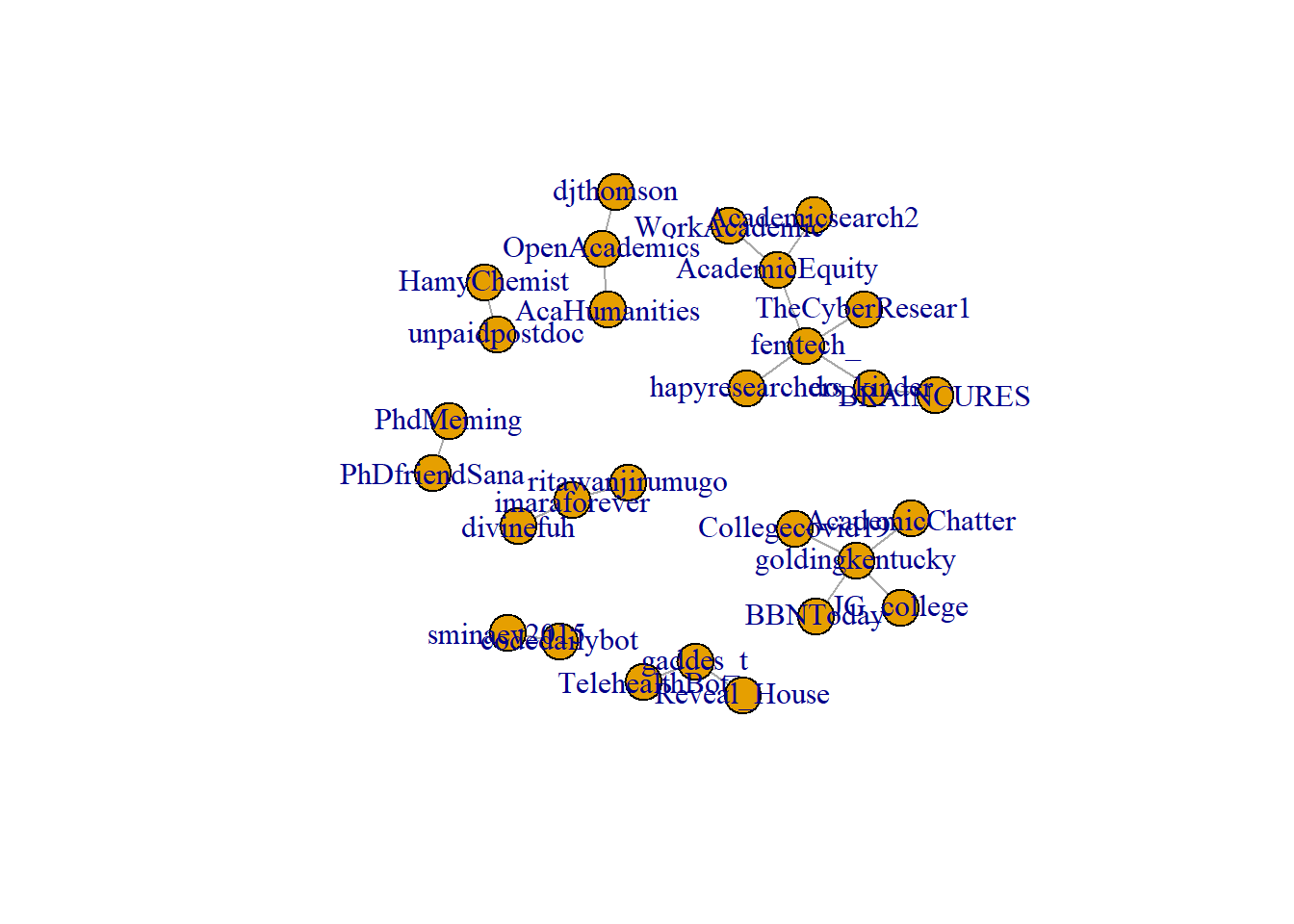 ## [9] "djthomson" "do_kinder" "femtech_" "HamyChemist"