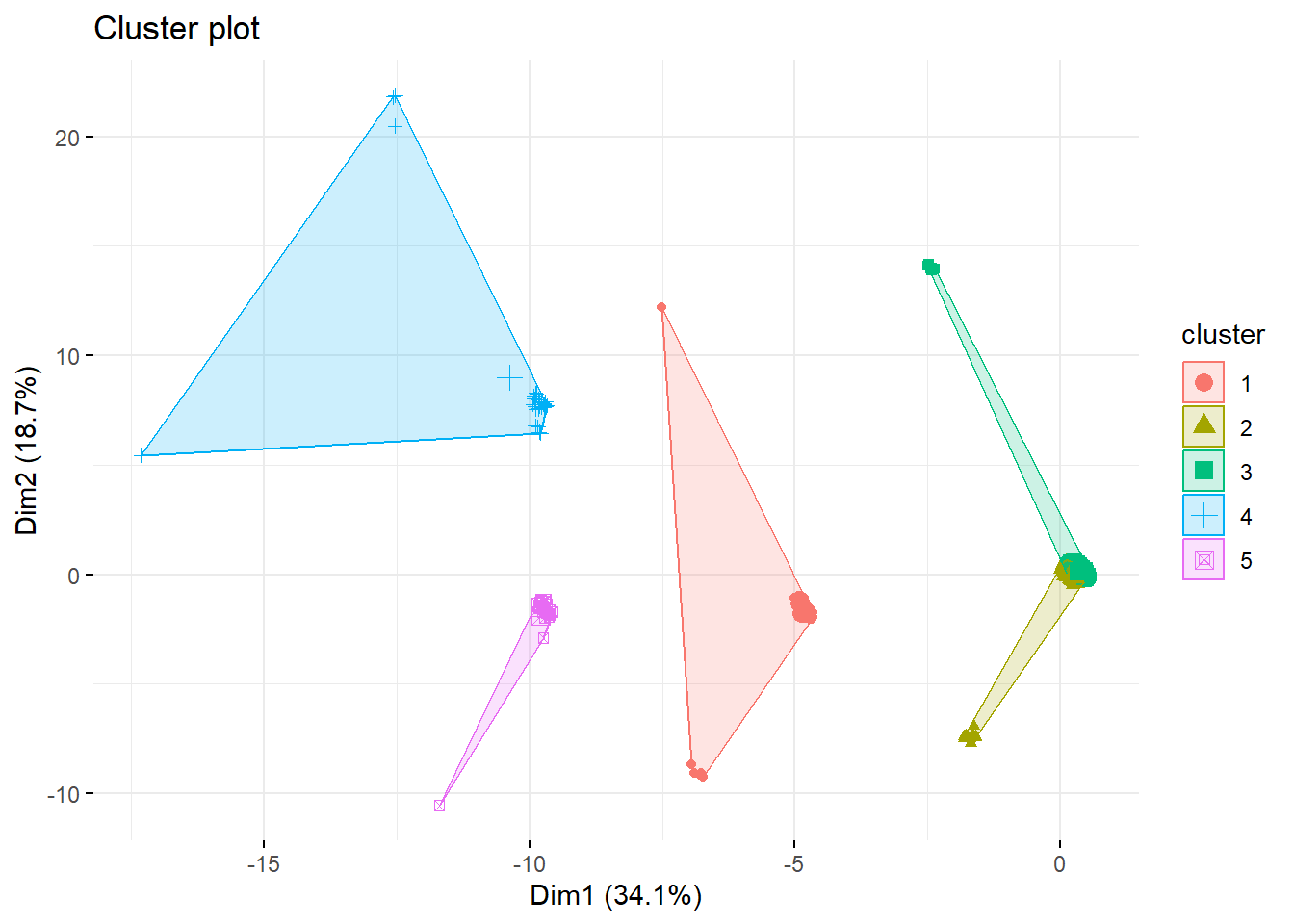 k5 <- kmeans(survey_data, centers = 5, nstart = 25)