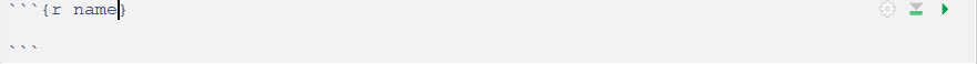 You can see that the chunk is shaded in gray and adds in a few icons on the upper right of this shaded space. A chunk has a few components. First, you must name your chunk, which allows you to easily refer to what the code in the chunk does and to facilitate the organization of your document. In the above example, “name” was used as the chunk’s name. Note that each chunk must have a different name or else you will receieve an error when the R Markdown file is compiled. You can also specify a number of options for your chunk inside {r …}, where each option is placed in … and separated by a comma. These options are specified just like arguments in a R function. Note that the chunk’s name is technically an option, so you must separate it from the other options using a comma. Some common options include: