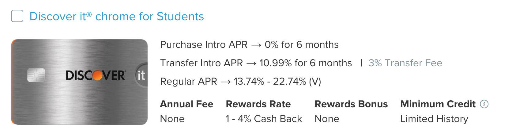 Consider the Discover credit card for students, and the following two scenarios: