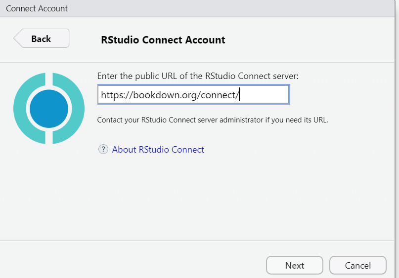 步驟六、填入https://bookdown.org/connect/ 按下Next連接