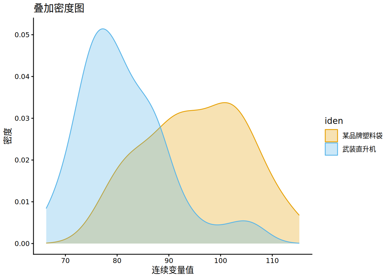 iden <- as.factor (c (rep ("武装直升机" ,50 ),rep ("某品牌塑料袋" ,50 )))