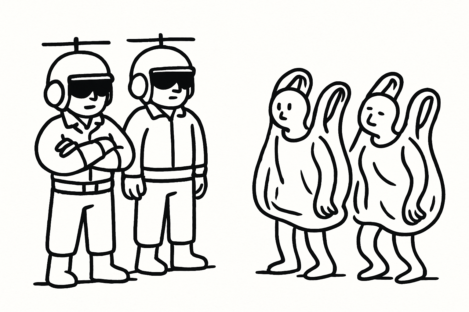故事的设定是这样,在很近很近的时间点上,也许是平行宇宙,有一个不为你知的世外桃源,上面生活这这样两群人,一群人的自我性别认同是武装直升机,另一群人的自我认同是某品牌塑料袋。由于这两个认同名称实在有点长,后文中我们分别简称他们为“机人”和“袋人”。