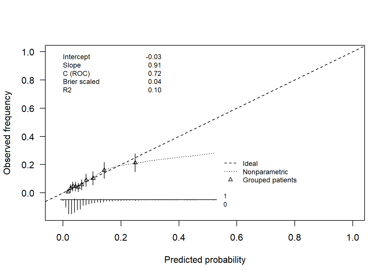 Evaluation of the performance of a (risk) prediction model requires several steps including the assessment of its discriminative ability and calibration.