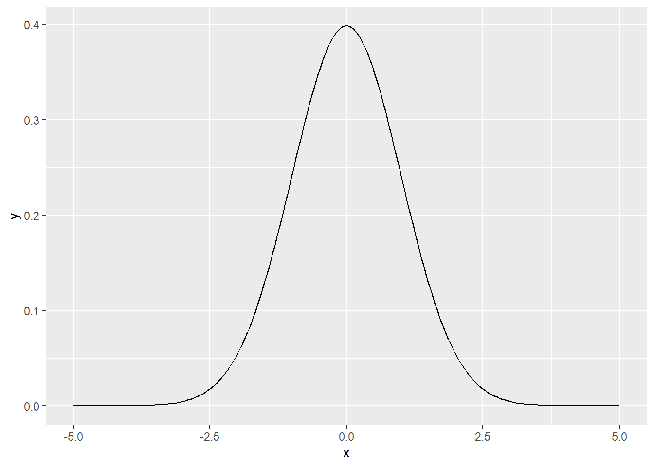Meanwhile, we also happen to know that if the null hypothesis is true, this \(t\) statistic follows a Student’s \(t\) distribution with \(n-1\) degrees of freedom. That means that if \(H_0\) were true, and we took a whole bunch of samples and did this calculation for each one of them, and then made a histogram of the distribution of all those individual \(t\)’s, it would look like this: